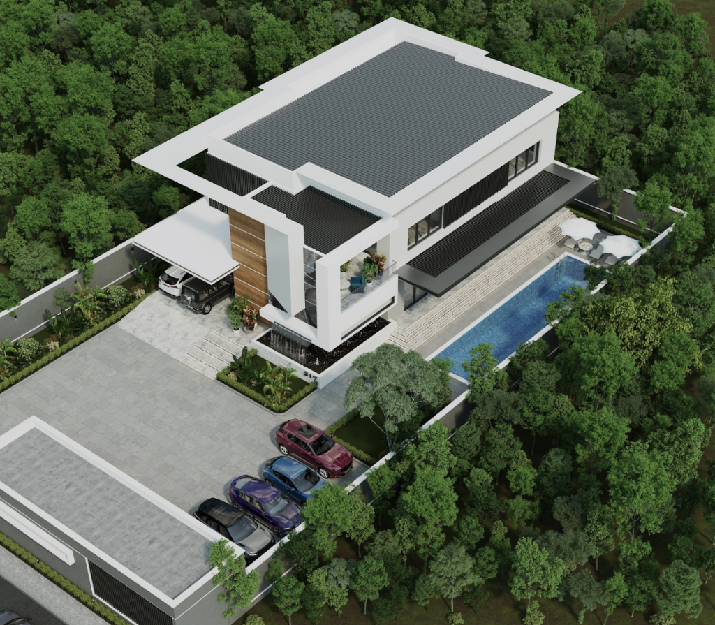 At the core of this project is a clear design philosophy: to craft a family home that is visually impressive, highly functional, and environmentally sensitive. With a built-up footprint of only 24.89%, the architect leaves over 75% of the site undeveloped, promoting natural ventilation, landscaping, and outdoor living, all key elements of climate-resilient architecture in Nigeria.